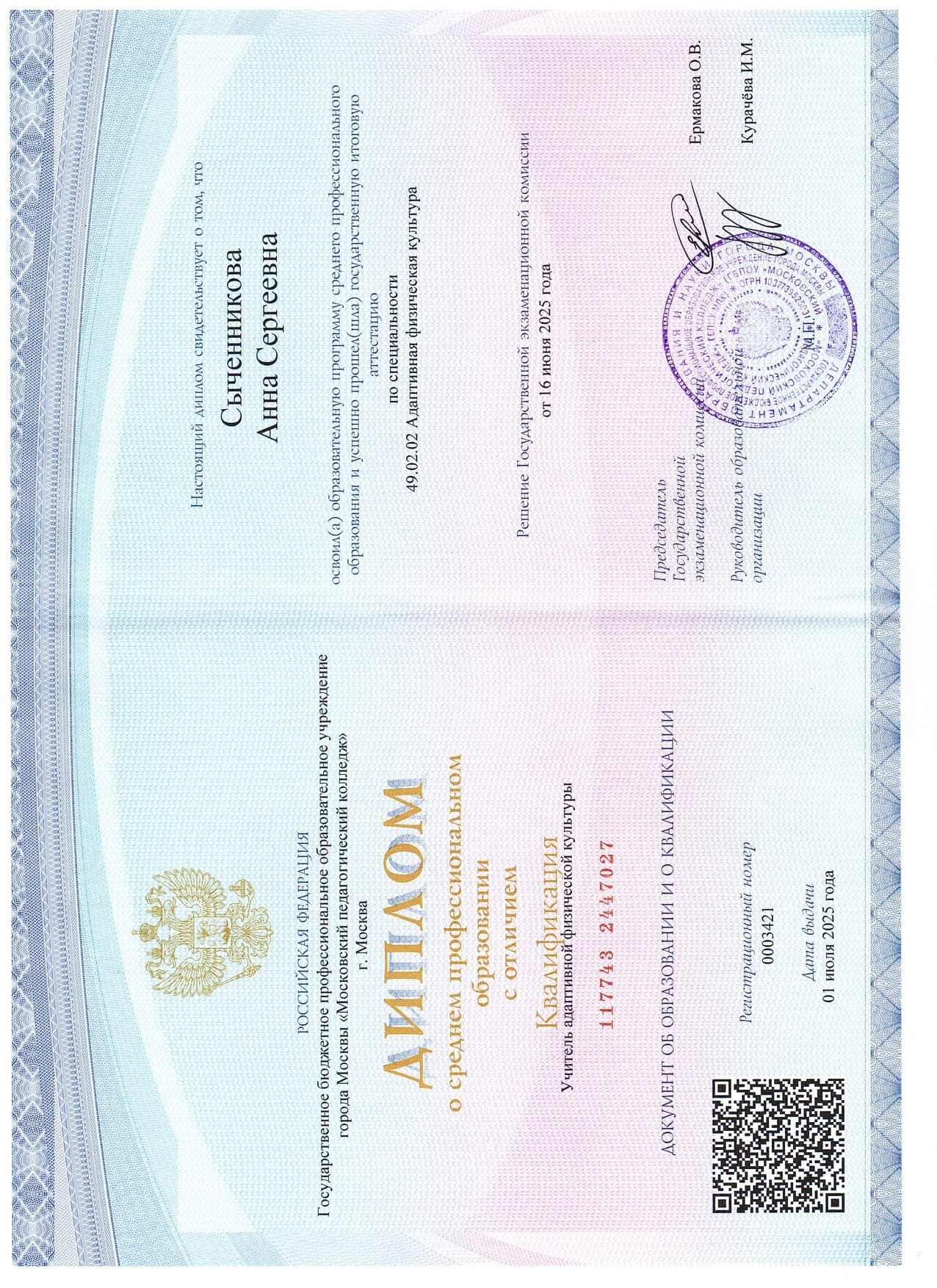 Сыченникова Анна Сергеевна — опытный массажист и инструктор ЛФК из Зеленограда с 5-летним стажем. Специализируется на адаптивной и лечебной физкультуре, общей и специальной физической подготовке для взрослых и детей. Предлагает индивидуальные занятия ЛФК и массаж различных видов — медицинский, релаксационный, спортивный, реабилитационный и массаж лица.